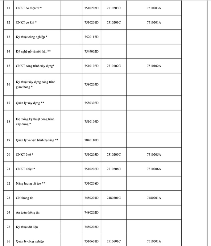 * Với phương thức tuyển thẳng, ưu tiên xét tuyển thẳng; xét học bạ THPT