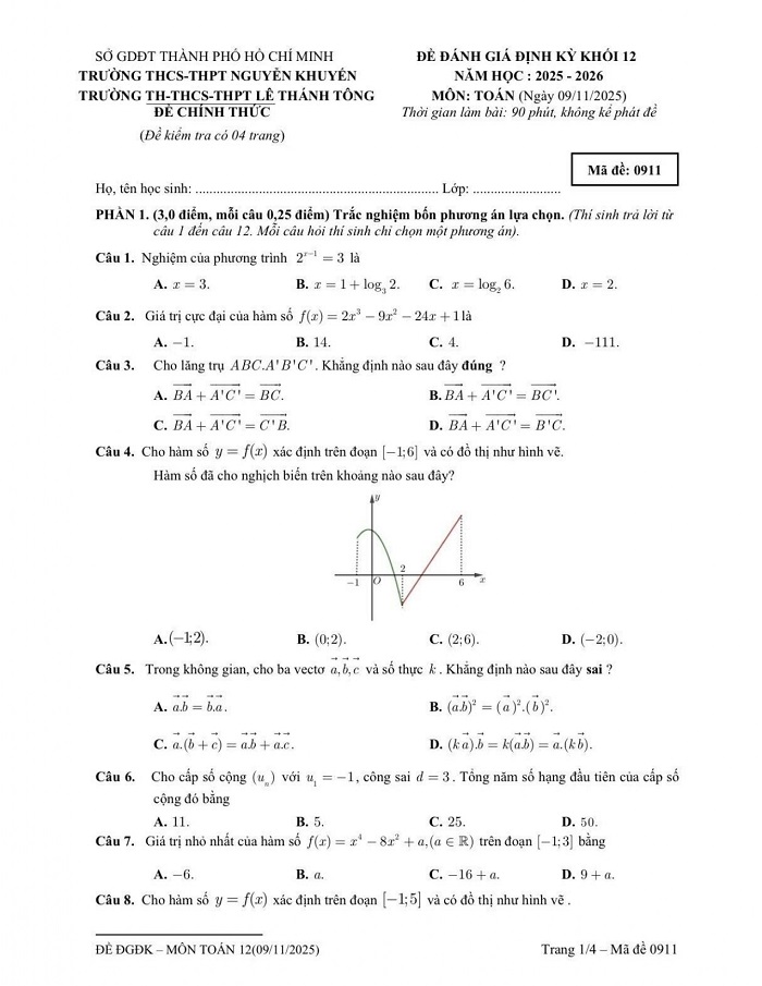 Tuyển sinh số xin gửi tới các thí sinh đề thi thử kỳ thi tốt nghiệp THPT năm 2026 kèm đáp án dưới đây để tham khảo và luyện tập.