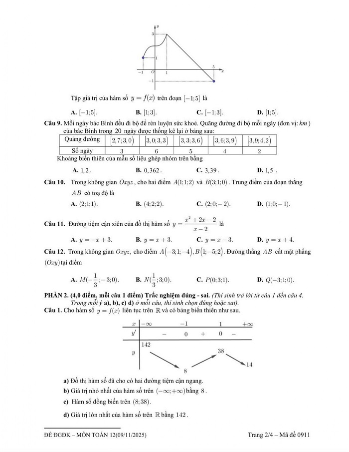 Đề thi thử tốt nghiệp THPT 2026 môn Toán (kèm đáp án)