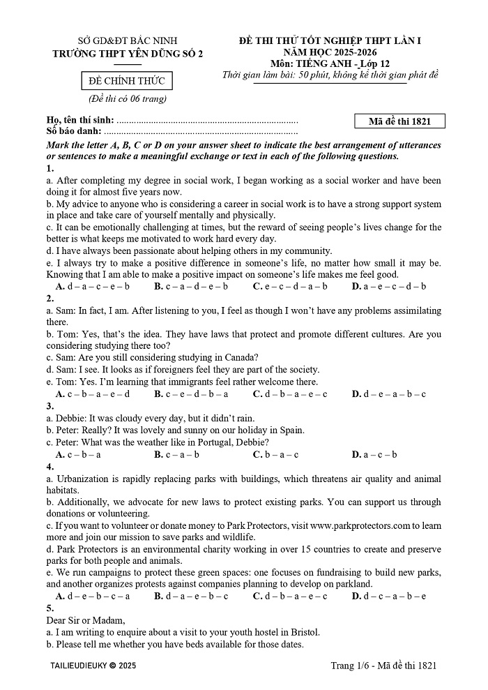 Tuyển sinh số xin gửi tới các thí sinh đề thi thử tốt nghiệp THPT năm 2026 môn Tiếng Anh (có đáp án) để thí sinh tham khảo và ôn thi.