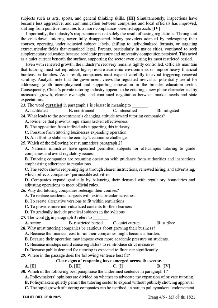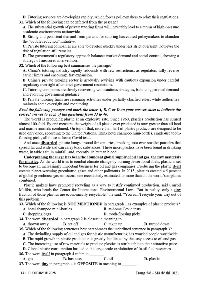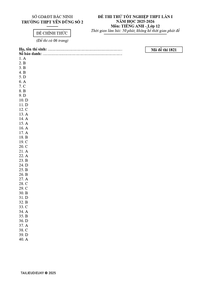 Đề thi thử Tiếng Anh tốt nghiệp THPT 2026 có đáp án